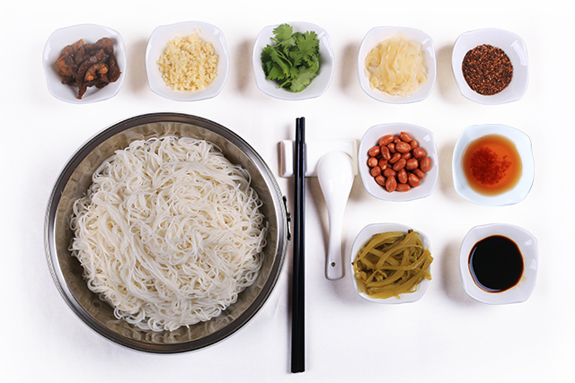 海南米粉由精米和蕃薯粉发酵而成,比一般的米粉更富有弹性,口感爽滑,且不易碎。但是要做得好吃,关键还是在配料的运用上。