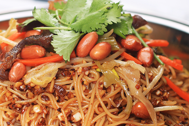 酸笋 25克 酸菜 25克 牛肉干 50克 花生米 15克 芝麻 少许 豆芽 少量