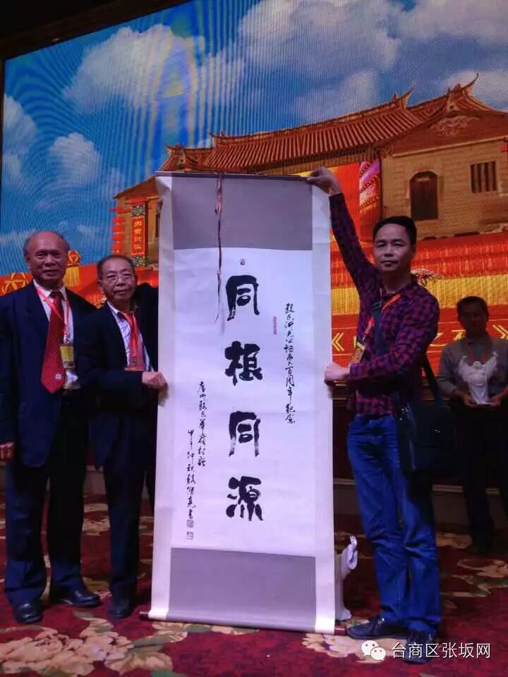 左1是骆经宗先生,【同根同源】是广州梅岭村捐献,书法很好受到重视和马来西亚人士的喜欢