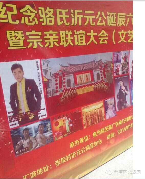 我们怀着对先祖无限崇敬的心情,兹定于2014年11月23日(农历十月初二)在福建省泉州市台商投资区张坂镇骆氏沂元公祠堂隆重举行<纪念骆氏六世沂元公诞辰六百周年暨宗亲联谊大会>,特诚邀海内外黄衍派各支派骆氏宗亲贤达,不吝拔冗,组团参加,共襄盛举。参加者除自备来往交通费外,本会将特别安排在泉州市招待膳宿(叁)天。